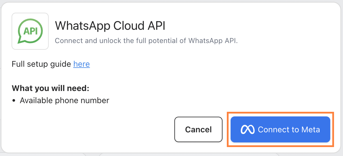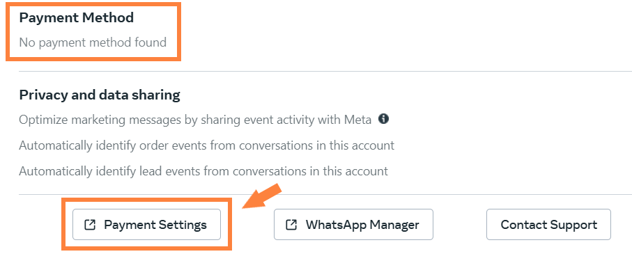 - If you skip adding a payment method, your WhatsApp Cloud API will still be connected, but some features will be restricted like message templates and campaigns.