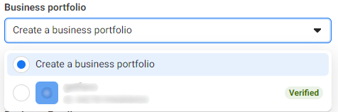 ⚠️ This step will only be necessary if you are creating a new Facebook Business Manager Account.- On the “Fill in your business information”, click the “Business portfolio” dropdown and choose between: