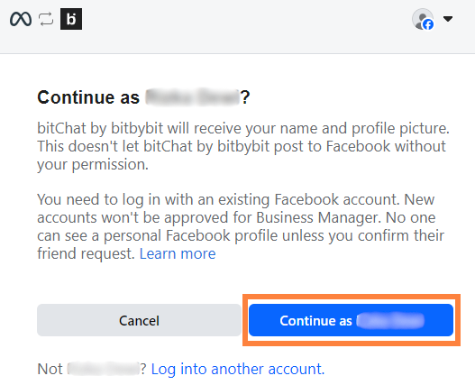 - Click “Continue as your Facebook Account”.